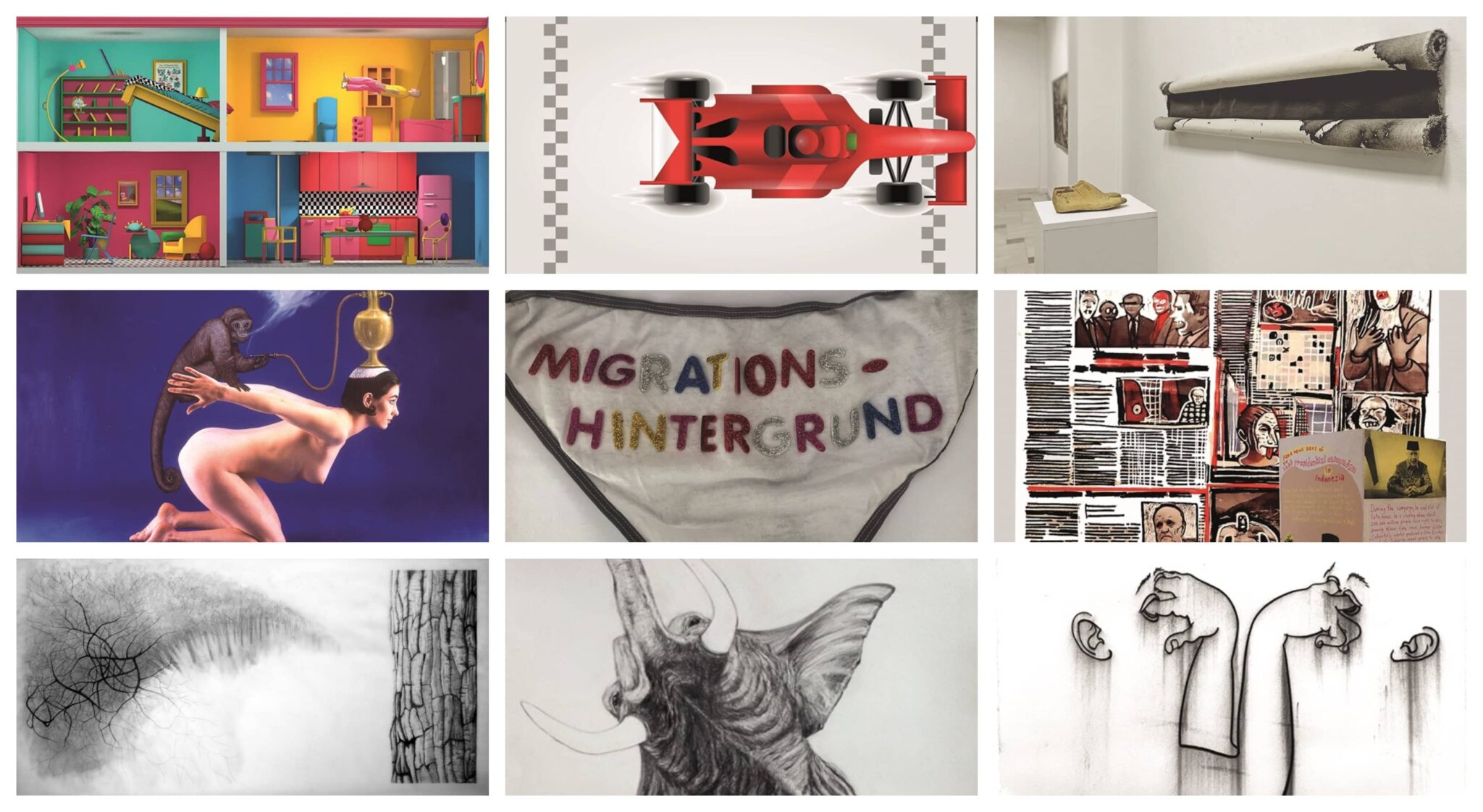 Преку методи на фрагментација, цртеж и видео. Моника Мотеска, Дарко Алексоски и Методи Ангелов-Мето, преку кршење на формата и составување на неочекувани визуелни хибриди, ја проблематизираат стабилноста на визуелните и мемориските записи. Тие дејствуваат на релацијата меѓу целината и фрагментот – разградувајќи го наративот за да го изградат одново во форма на „колаж“ или објект што одбива еднозначно читање.