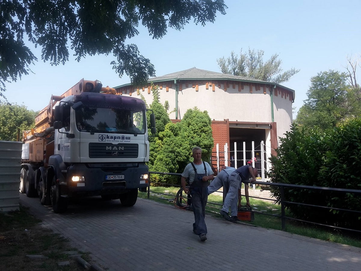 Утринава, влегоа камиони на градежната фирма „АД Карпош“ кои ќе работат на реконструкција на внатрешното живеалиште на жирафите. Реновирањето пред зимскиот период е донација од оваа градежна фирма.